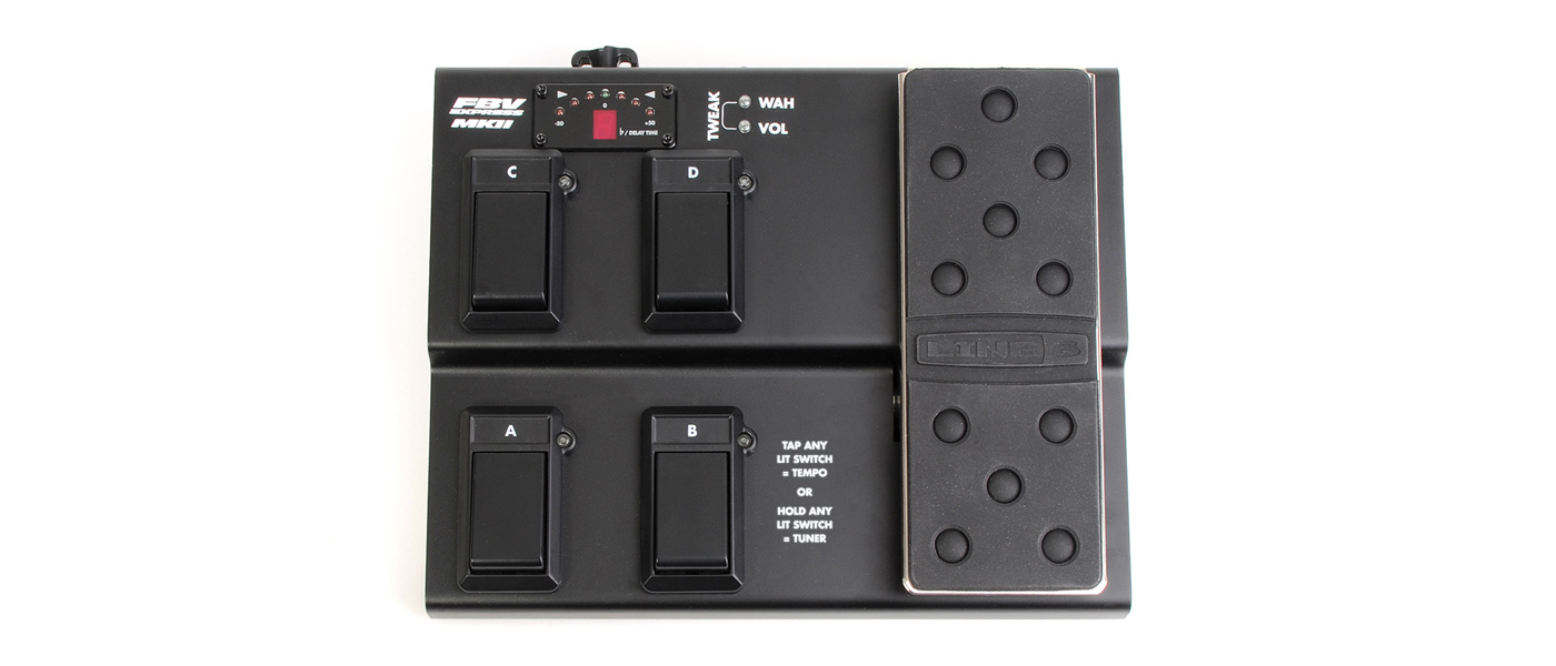 FBV Express MkIIは、プリセット選択用の4つのフットスイッチ、タップ・テンポ機能、クロマチック・チューナー、そしてボリューム、ワウ、ピッチコントロール用のエクスプレッション・ペダルを備えたコンパクトなフット・コントローラーです。RJ-45ケーブルが付属します。