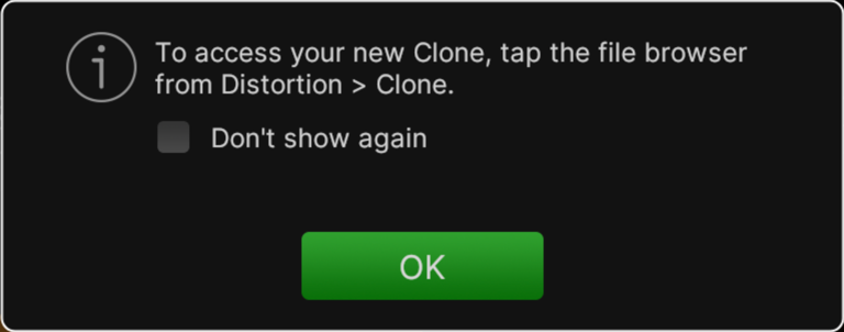 クローンの種類によっては、モニタリング時に聴きやすくするためにAmpやCabブロックが自動的に追加される場合があります。これらのブロックはあくまでモニタリング目的のものであり、クローンの一部として記録されることはありません。(例えば、キャブなしのアンプや、アンプとキャブの両方なしのディストーションペダルの音を聴きたいとは普通思わないでしょう。ただ、もし80年代インダストリアルを演奏しているなら、その限りではありませんね?)