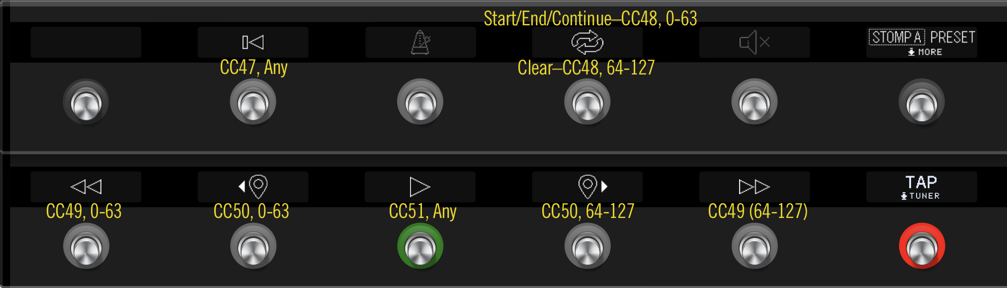 - Cycle Start/End/Continue — CC48、値64-127