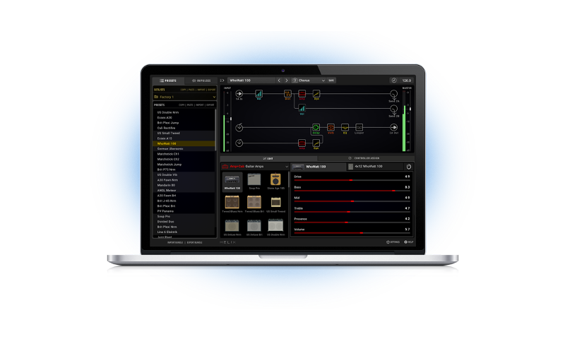 - 60種類以上のアンプ、30種類以上のキャビネット、100種類以上のエフェクト